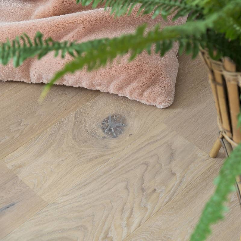 Une parquet blanc déjà teinté pour chambre et salon.